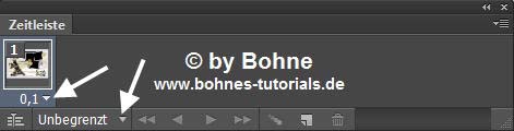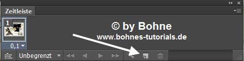 Nun zur Animation      20) Fenster -> Zeitleiste (oder Animation bei CS3) Stelle eine Frameverzögerung von 0,1 Sekunden und Unbegrenzt ein