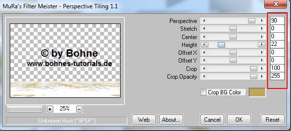 Filter -> Mura's Meister -> Perspective Tiling, mit diesen Werten