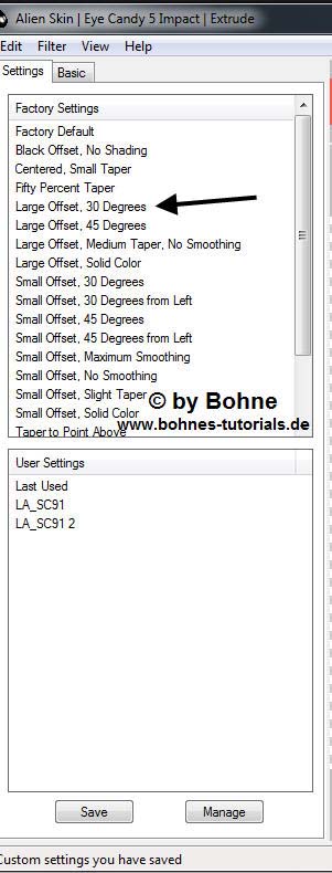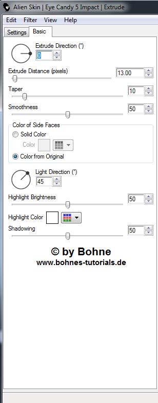 das Material   und den Filter  Alien Skin Eye Candy 5: Impact –>  Extrude