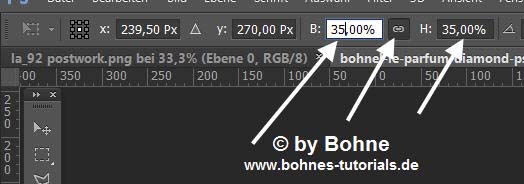 10)  Öffne jetzt die Tube "LA_Deco Spiegelung" füge sie in dein Bild ein und verkleinere es ebenfalls auf 35%.