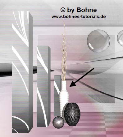 08) Neue Ebene erstellen Auswahl -> Auswahl laden -> such dir "Bohne #2" heraus  Die Auswahl über Umschalt+F5 mit Weiß füllen  Auswahl aufheben.    09) Öffne die Tube "LA_Deco" oder dein Vase bzw. Deko Material und ziehe  ihn mit gedrückter Umschalt-Taste auf  dein Bild. Über Strg+T in den Transformationsmodus wechseln und die Größe auf 35% ändern