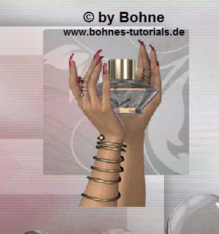 Stelle den Mischmodus auf "Luminanz"    13) Öffne jetzt die Tube "LA_hands with Flacon" kopieren und in dein Bild einfügen,  verkleinern auf 15%, Scharfzeichnen und in den kleinen Hintergrund hinein verschieben, siehe Bild