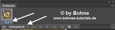Gehe auf die Ebene "R2", Effekte - Alien Skin Xenofex 2 - Constellation, klicke einmal dauf Random Seed  diesen Vorgang wendest du auch bei der Rasterebene "R3" an.    Setze jetzt noch dein Wasserzeichen und den Copy Vermerk auf das Bild.    Nun zur Animation    Fenster -> Zeitleiste (oder Animation bei CS3) Stelle eine Frameverzögerung von 0,1 Sekunden und Unbegrenzt ein