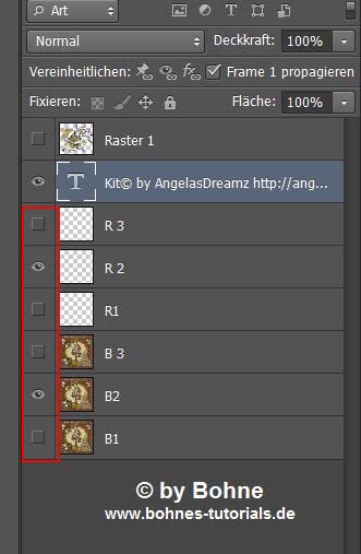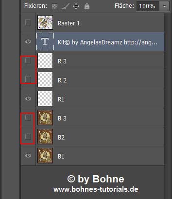 Schalte jetzt die Augen der Ebenen "B 1 und R1 " unsichtbar und das der Ebenen "B 2 und R2 "  Sichtbar