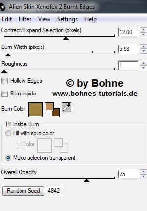 Hintergrundebene durch doppelklick zur Ebene 0 umwanden   Filter -> Alien Skin Xenofex 2 -> Burnt Edges, mit dieser Einstellung