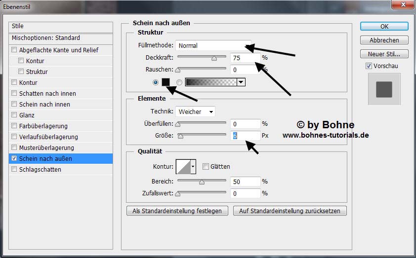 Offne die Tube "AD-GD-Element01"  und ziehe sie mit gerückter Umschalt-Taste auf dein Bild  Ebenenstil hinzufügen -> Schein nach außen