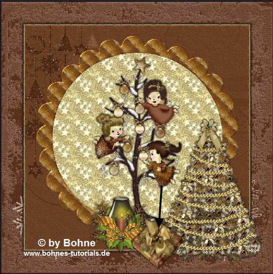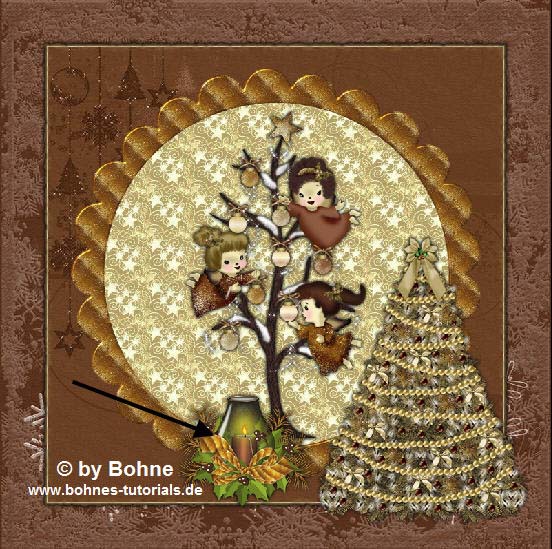 08) Nun schmücke es nach deinem Gefallen.  Verwende etliche Elemente und verkleinere sie durchschnittlich auf 50%,  den  Schein nach außen anwenden nicht vergessen.Wenn du möchtest kannst du noch einen Schriftzug auf dein Bild setzen.