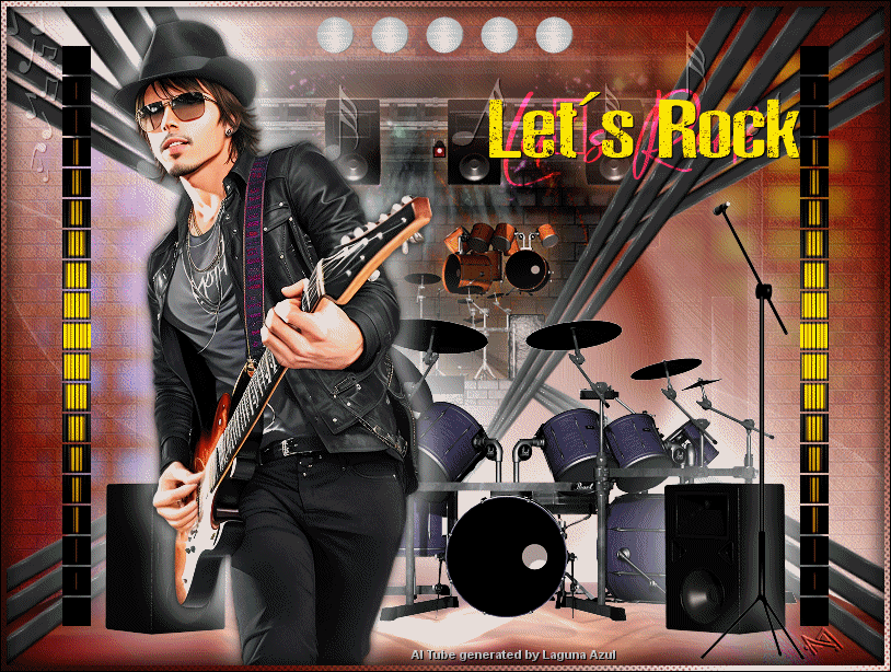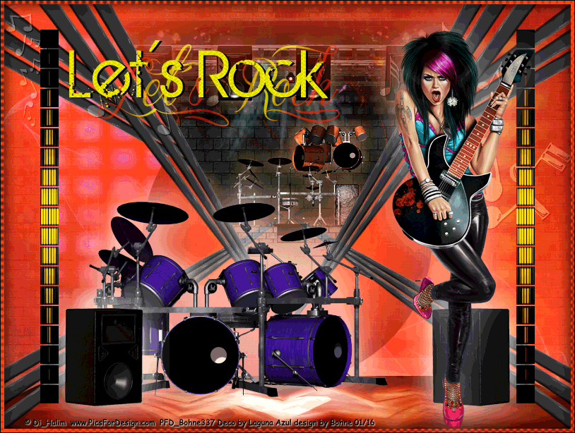 01) Öffne die Datei "LA_LET´S ROCK"   suche dir eine helle VGF und eine dunkle HGF aus deiner Tube. Background ggf. umfärben   02) Aktiviere die Ebene "BOXEN 1" Drücke und halte die Umschalt-Taste und Klicke jetzt auf die Ebene "rahmen"  mit Strg+G packe sie in eine Gruppe  Klick auf das Auge und mach die Gruppe erst mal unsichtbar, so hast Du einen besseren Überblick