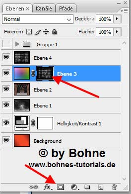 Wechsle zurück zu den Ebenen aktivere  die darunter liegende Ebene  und klicke auf das "Vektormaske hinzufügen" Symbol