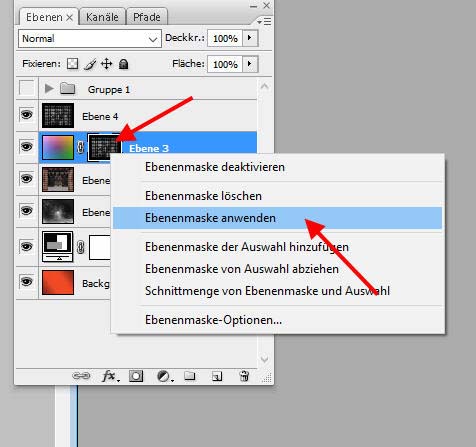 Rechter Mausklick auf die Ebenenmaske und "Ebenenmaske anwenden"