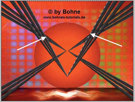 Auswahl -> Auswahl verändern -> Erweitern um 4 Pixel  Auswahl -> Auswahl speichern  Auswahl aufheben    10) Öffne die Tube "LA_STAGE 2"  Ziehe sie auf dein Bild und verschiebe sie in dem Dreieck, wo du gerade die Auswahl erstellt hast, wie es dir gefällt Auswahl - Auswal laden-> Lade die