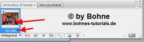 Jetzt zur Animation    16) Fenster -> Animation  Stelle eine Frame-Verzögerung von "0,15" Sekunde ein