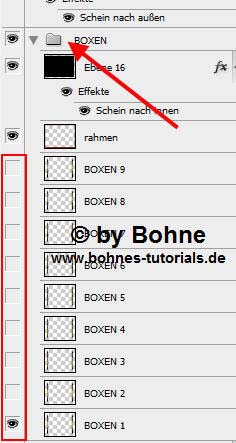 Ziehe jetzt die Gruppe "BOXEN" unter deine Tuben Ebene Und schalte sie wieder Sichtbar