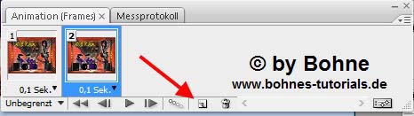 18) Klicke wieder das "Dupliziert ausgewähltes Frame"  Schließe das Auge der 2. Ebene und öffne das Auge der 3. Ebene      19) Klicke wieder das "Dupliziert ausgewähltes Frame"  Schließe das Auge der 3. Ebene und öffne das Auge der 4. Ebene  Bei der Gruppe "H1-3" gehst Du rückwerts zur Ebene "H 2"  20) Wiederhole diese Schritte bist Du bei der  Ebene "BOXEN 9" angekommen bist    Datei -> Für Web und Geräte speichern  und als gif-> Nur Bilder speichern Ich hoffe es hat Dir Spaß gemacht !!