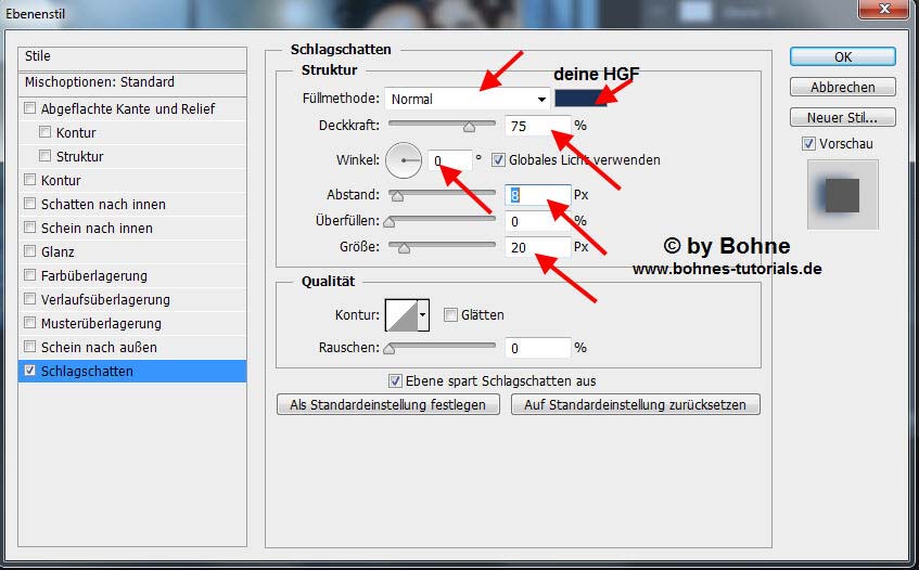 Ebenenstil  hinzufügen-> Schlagschatten