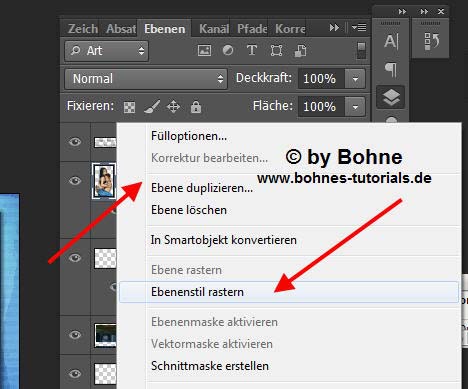 Rechter  Mausklick in die Ebene und auf "Ebenenstil rastern"