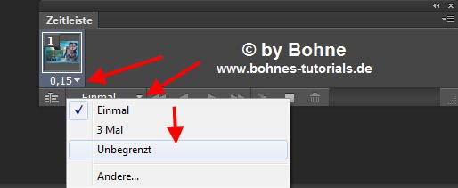 Stelle eine Frameverzögerung von 0,15  Sekunden ein und unbegrenzt