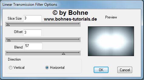 stelle den Mischmodus  auf "Luminanz"  und die Deckkraft auf 50%.  03) Nun gehe auf Filter –> dbs flux –>  Linear Transmission mit folgender Einstellung
