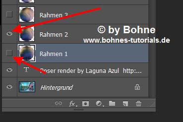 schließe das Auge der Ebene "Rahmen 1" und öffne das der Ebene "Rahmen 2"