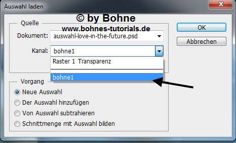Neue  Ebene erstellenAuswahl  -> Auswahl laden -> bohne2