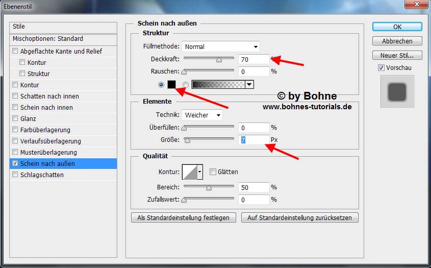 06)  Ebenenstil hinzufügen -> Schein nach außen
