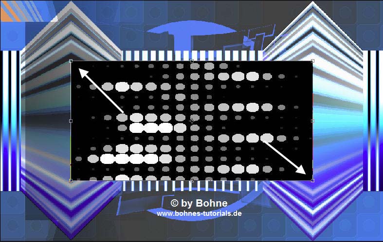 12) Auswahl -> Auswahl laden -> suche "Bohne #7" heraus 2-mal die Entf-Taste drücken und die Auswahl wieder aufheben  Stelle den Mischmodus der Ebene auf "Multiplizieren" und die Deckkraft auf 70%    13) Auswahl -> Auswahl laden -> suche "Bohne #8" heraus Über umschalt+F5 mit deine HGF füllen  Auswahl -> Auswahl aufheben (Strg+D)   14) Öffne die Maske "sg_dotty-waves"  Mit Strg+A und Strg+C kopieren  zurück zu deinem Bild und mit Strg+V einfügen  Über strg+T die Größe an der gerade gefüllten Ebene anpassen