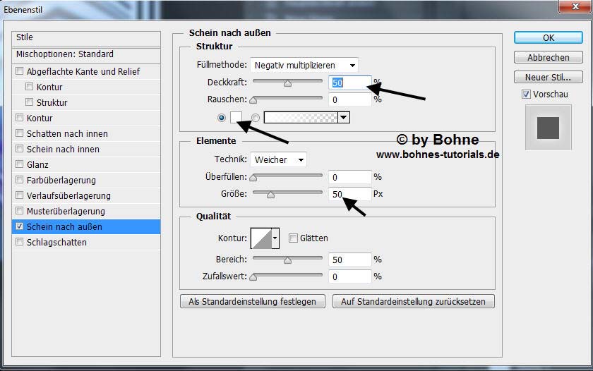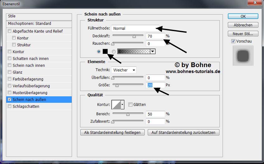 Das etwas übersteht stört nicht, den Du fügst den Rahmen jetzt Mit Strg+V  in dein Bild ein.    23) Ebenenstil hinzufügen -> Schein nach außen