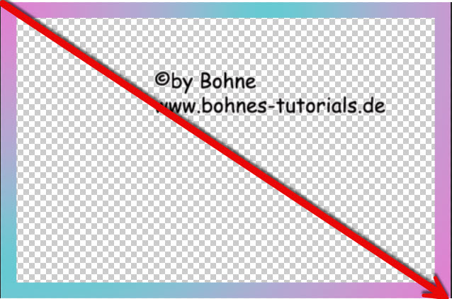 Ebene -> Anordnen -> Schrittweise nach hinten  Aktiviere wieder die Ebene "Ebene f�r HG Bild"  Ziehe einen Linearen Verlauf (mit den jetzt vorhandenen Farben) von oben links nach unten rechts auf