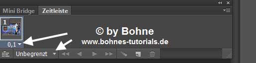 24) Setze jetzt ©  + design by …. drauf   Jetzt geht es zur Animation    25) Fenster -> Zeitleiste oder bei SC3 Animation  Stelle eine  Frameverzögerung von 0,1 Sekunde und Unbegrenzt ein