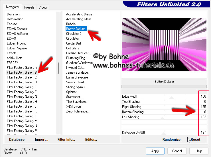 |  03) Filter -> Filter Factory Gallery B –> Button Deluxe, mit dieser Einstellung  |