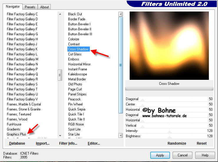 12) Filter-> Graphics Plus-> Cross Shadow