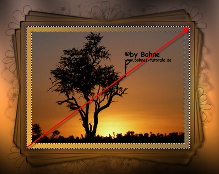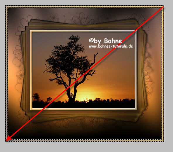 29) aktiviere die Ebene5  (die mit den Rahmen)und ziehe wieder den  Verlauf, dieses Mal von rechts oben nach links unten, auf