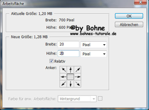 27) aktiviere Ebene1 (die  mit der hellen VG)Bild->  Arbeitsfläche->(Strg+Alt+C) erweitern um