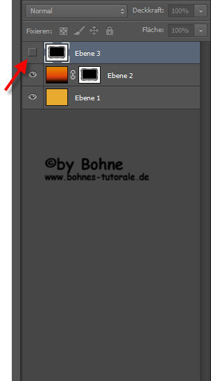 10) schalte nun das Auge der  Ebene3 (die mit der Maske) unsichtbar