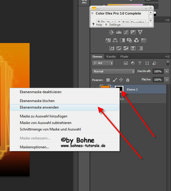 11) rechter Mausklick auf  die Ebenenemaske und Ebenenemaske anwenden