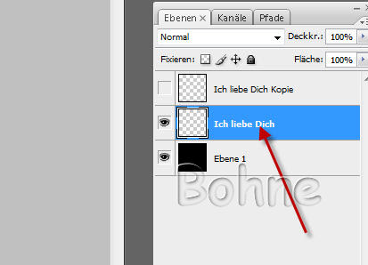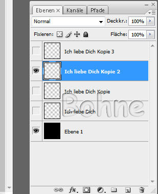 5) die Textebene duplizieren, dann das Auge auf unsichtbar stellen und auf