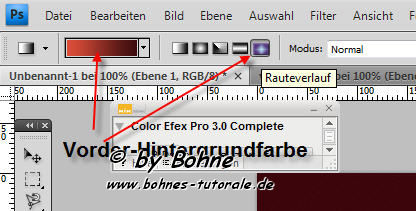 1) öffne eine transparente Leinwand 500 x 500 Pixel 2) suche Dir eine helle und eine dunkle Farbe aus Deiner TubeIch habe Vordergrundfarbe #ec4734 und Hintergrundfarbe #3e0003 verwendet
