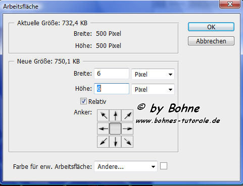 21) Auf Hintergrudebene reduzieren 22) Bild-> Arbeitsfläche 6 Pixel Weiß