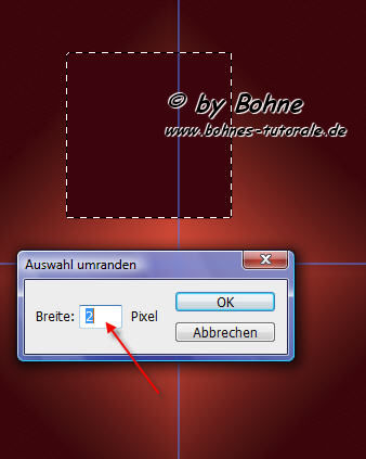 6) neue Ebene erstellen, klicke einmal in deine Leinwand und füffe die Fläche mit deiner dunklen Farbe 7) Auswahl-> Auswahl verändern-> Rand.... 2Pixel