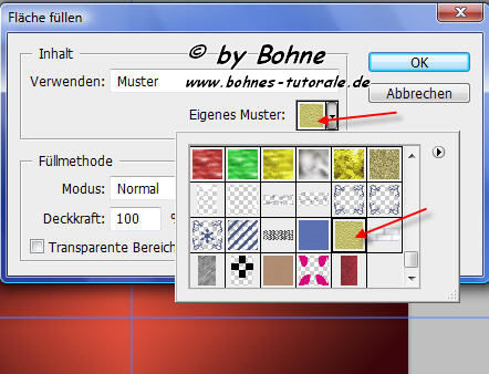 8) Bearbeiten-> Fläche füllen (Umschalt+F5) -> Goldmuster