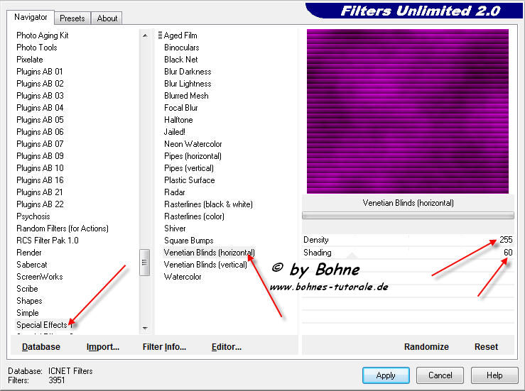 4) Ebene duplizieren, dann Filter-> Unlimited 2.0..-> Special Effects-> Venetians (horizontal)