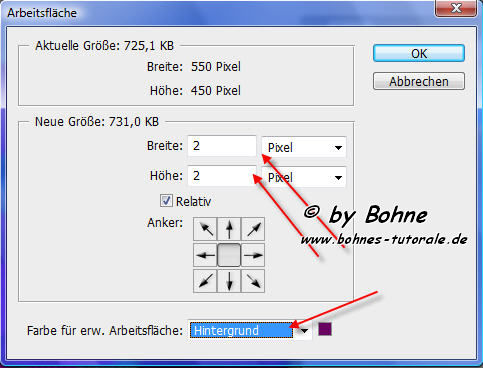 25) Bild-> Arbeitsfläche-> erweitern um 2Pixel mit deiner dunklen Farbe