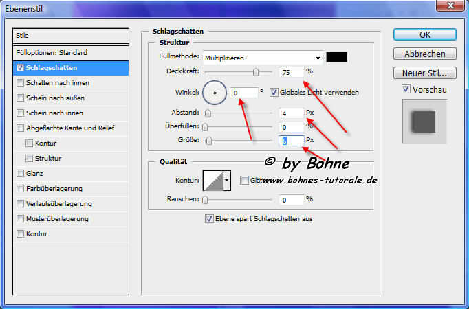 6) Ebenenstil hinzufügen-> Schlagschatten