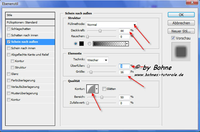 11) Ebenenstil hinzufügen-> Schein nach außen
