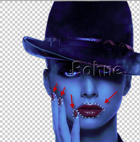 15) als nächstes möchte ich alles was  rot ist, also Lippen und Fingernägeln, einfärben