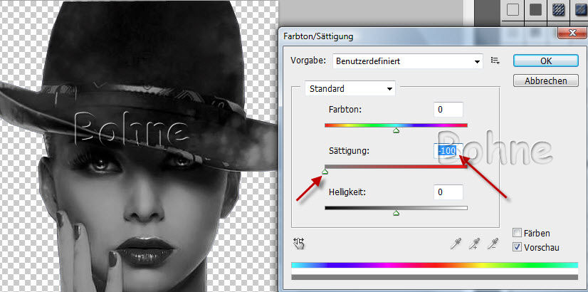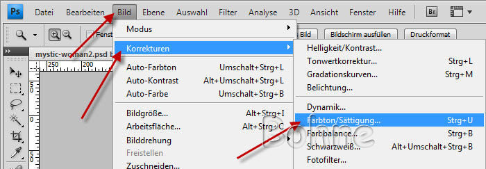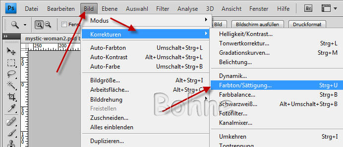17) Bild-> Korrektur-> Farbton  /Sättigung,