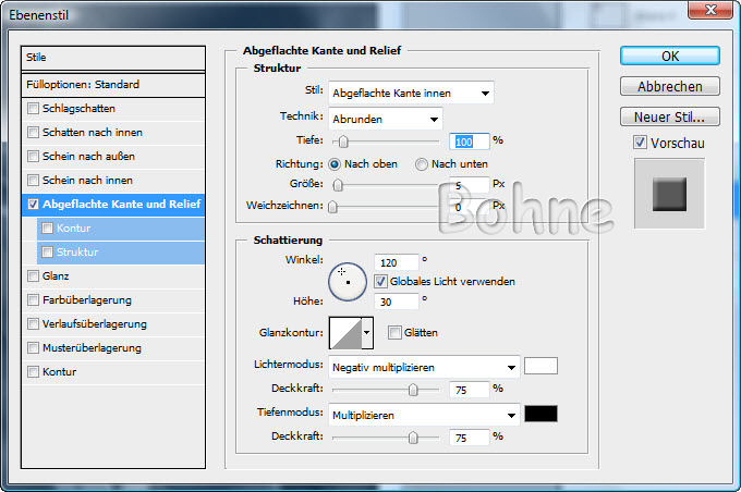 42) Ebenenstil hinzufügen->  Abgeflachte Kante und Relief