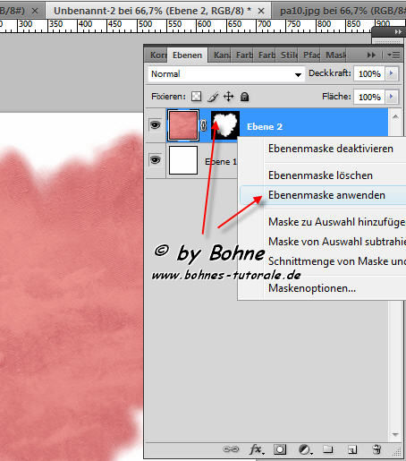 9) lösche die Maskenebene, klicke mit der rechten Maustaste auf die Ebenenmaske und dann aufEbenenmaske anwenden