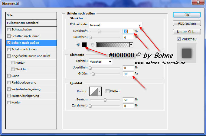 18) Ebenenstil hinzufügen-> Schein nach außen