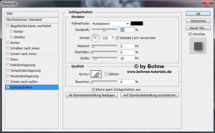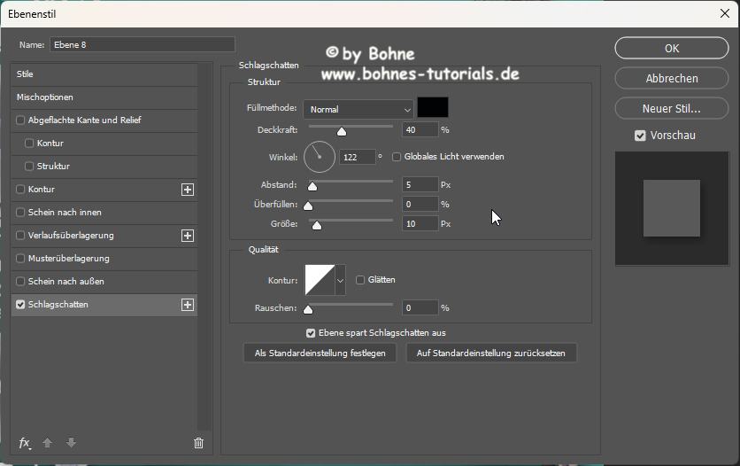 Du kannst auch gerne eine eigene Blume dort hinsetzen.  Wende danach diesen Schlagschatten an